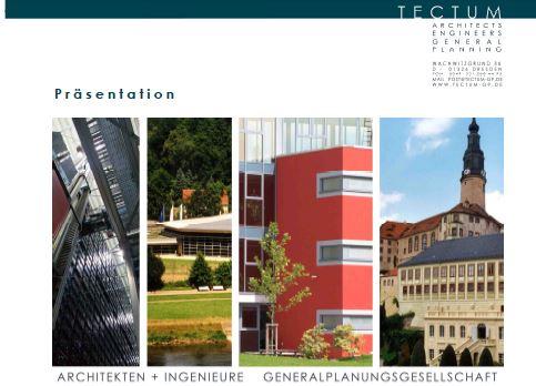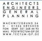 Der Name TECTUM GP, eine Vereinigung von profilierten Architekten und Ingenieuren steht für kompetente und seriöse Planungs- und Beratungsleistung seit mehr als zehn Jahren. Der Sitz der Planungsgesellschaft ist in Dresden. Weitere Standorte befinden sich in Pirna, Weimar und Dubai. In den letzten Jahren haben wir uns zu einer leistungsfähigen, überregional tätigen Ingenieurgesellschaft mit breit gefächertem Aufgabenspektrum entwickelt. Über 25 Mitarbeiter in drei Spartengesellschaften mit dem Focus auf